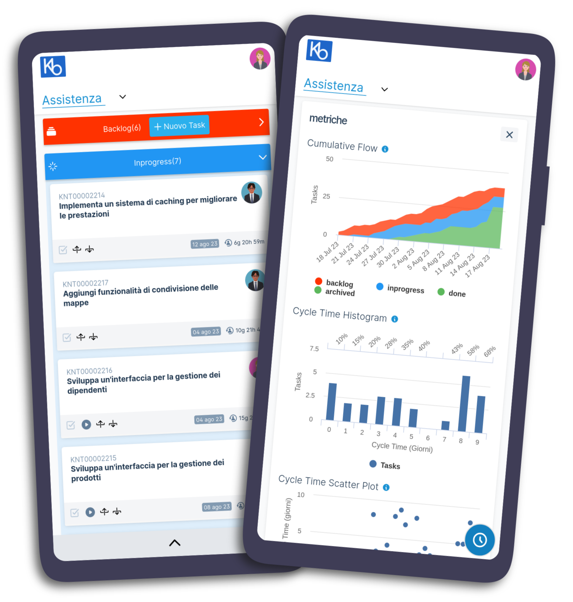 La dashboard dei singoli Kanban Board riporta la panoramica dello stato di avanzamento del kanban. Grazie ai numerosi grafici, come Cumulative Flow Diagram, Cycle Time Histogram, Cycle Time Scatter Plot, Throughput Histogram, Throughput Chart, è molto semplice individuare e risolvere eventuali colli di bottiglia. Le statistiche forniscono un'utile report numerico per stabilire lo stato di salute del kanban.